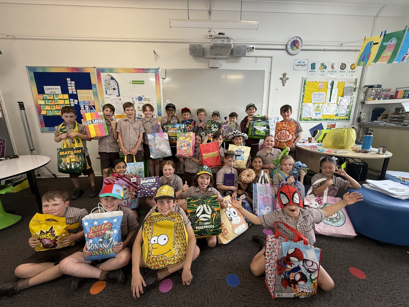 Heath Churchill and his class with their showbags.